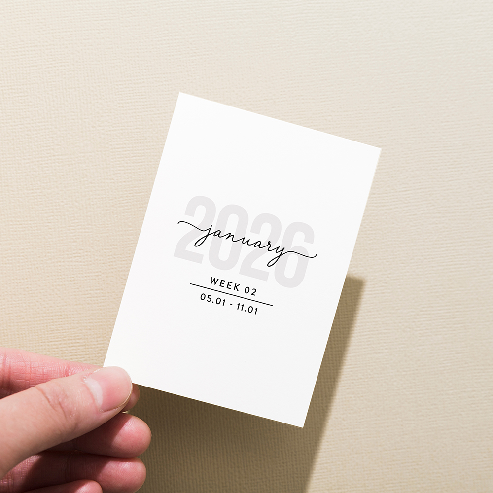 Stay organized and inspired all year long with these 2026 week numbers digital journaling cards. Each card is designed with a clean and minimal look, making it easy to track weeks, plan projects, or document your memories in a clear and structured way. Perfect for digital planners, journaling, scrapbooking, or memory-keeping, these cards are a practical and creative addition to your digital workspace. Use them as weekly dividers, overview cards, or accents in your layouts to keep your projects beautifully organized. Ideal for anyone who loves digital journaling, planning, or creative design. A great tool to bring more structure and style into your year! This set includes 53 cards.