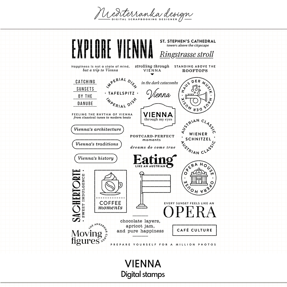 Bring a touch of old-world charm to your creative projects with these Vienna digital stamps. Inspired by the timeless beauty of Austria’s capital, this set captures iconic details such as elegant architecture, city landmarks, coffeehouse culture, and romantic European flair. Perfect for scrapbooking, journaling, card making, planners, or DIY craft projects, these digital stamps add a unique artistic accent to your designs. Easy to use and versatile, they can be resized, layered, and combined to fit your personal style, making them a wonderful addition to your creative collection.