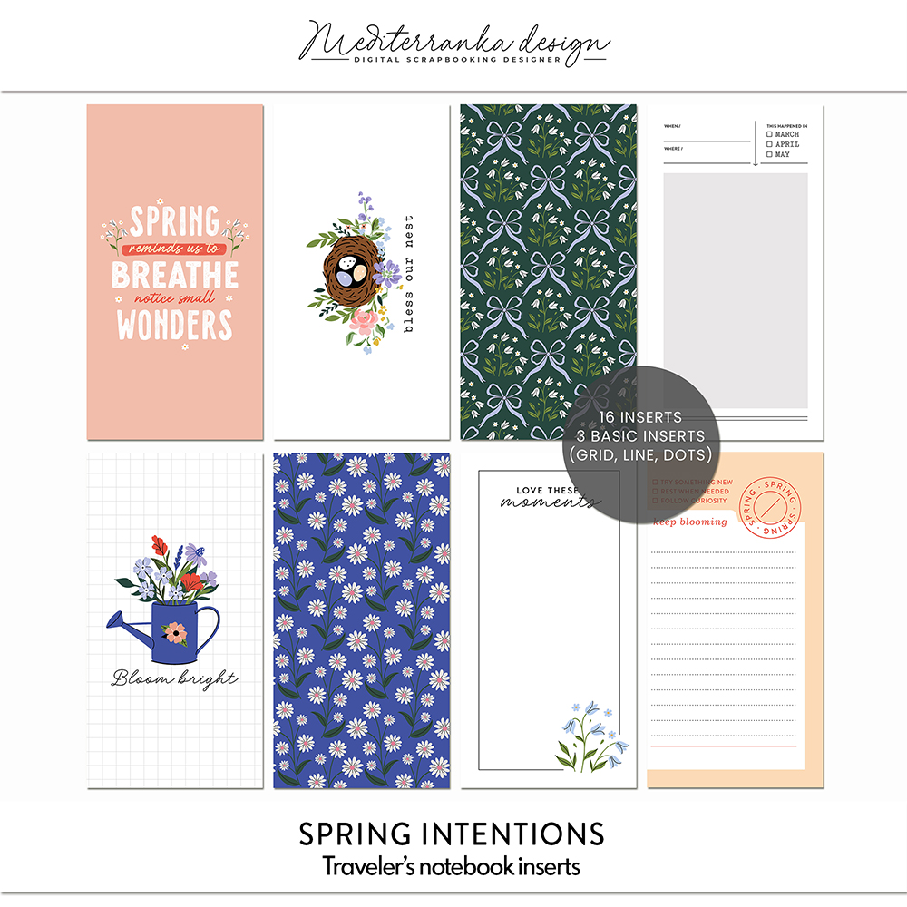 Spring Intentions Traveler’s Notebook kit is thoughtfully designed to help you stay organized, inspired, and mindful throughout the spring season. This set is perfect for journaling, planners, memory keeping, and creative travel journals. Each insert is filled with prompts, inspirational phrases, and spaces for reflection, goal setting, and personal planning, making it easy to capture your thoughts, ideas, and intentions on the go. With a fresh spring aesthetic, these inserts encourage mindfulness, self-care, and seasonal reflection. They are ideal for daily journaling, tracking habits, planning spring goals, and documenting travels or outdoor adventures. Use them to create intentional spreads in your traveler’s notebook, cultivate positive routines, and celebrate the small moments of spring every day. These inserts are perfect for anyone who loves journaling, planner organization, seasonal planning, creative memory keeping, and mindful self-reflection. Add a touch of seasonal inspiration and focus to your traveler’s notebook with this versatile and motivational spring set.